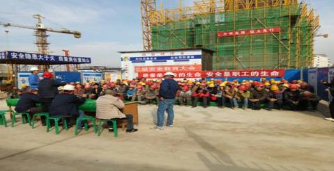 周部長重點講解了施工現(xiàn)場安全防護知識、應急救援處理、技術交底,對建筑施工中容易出現(xiàn)的“五大事故”、“三違”、“四不放過”、文明施工中的“三清、六好、一保證”等標準以及如何辨識危險源、如何及時發(fā)現(xiàn)安全隱患等關鍵問題作了講解,并對大家提出的意見、建議及有關疑問作了詳細解答,并要求項目施工須嚴格按照質量安全管理規(guī)范操作,加強安全檢查工作,極力消除安全隱患,杜絕質量安全事故的發(fā)生,抓好質量管理和服務工作,不斷提高施工工藝水平,努力推動工程質量安全水平更上臺階。