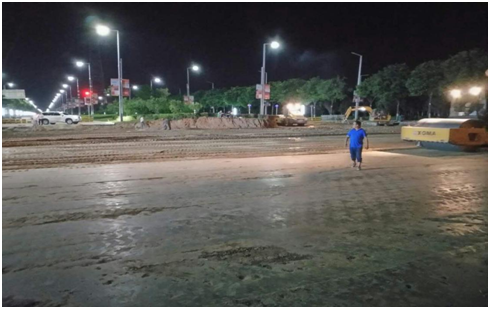 西環(huán)路平交口道路自建設以來,項目部克服時間緊、任務重、溝通難的實際困難,合理安排施工順序和時間,嚴格按照相關道路施工標準施工;廣大筑路員工冒著酷暑,加班加點,熱火朝天地奮戰(zhàn)在施工現場;為了保證施工安全,防止塵土和噪音污染,項目部在整個路段都設置了圍擋,利用大型挖機對路面進行開挖,人頭攢動,機聲隆隆,一片繁忙,為早日交工提供了充分保障。(徐堯)