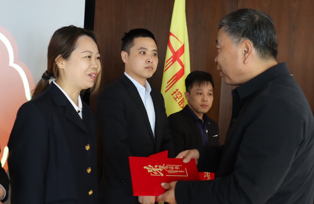 △集團董事長魏進民給先進頒發(fā)榮譽證書和獎金
